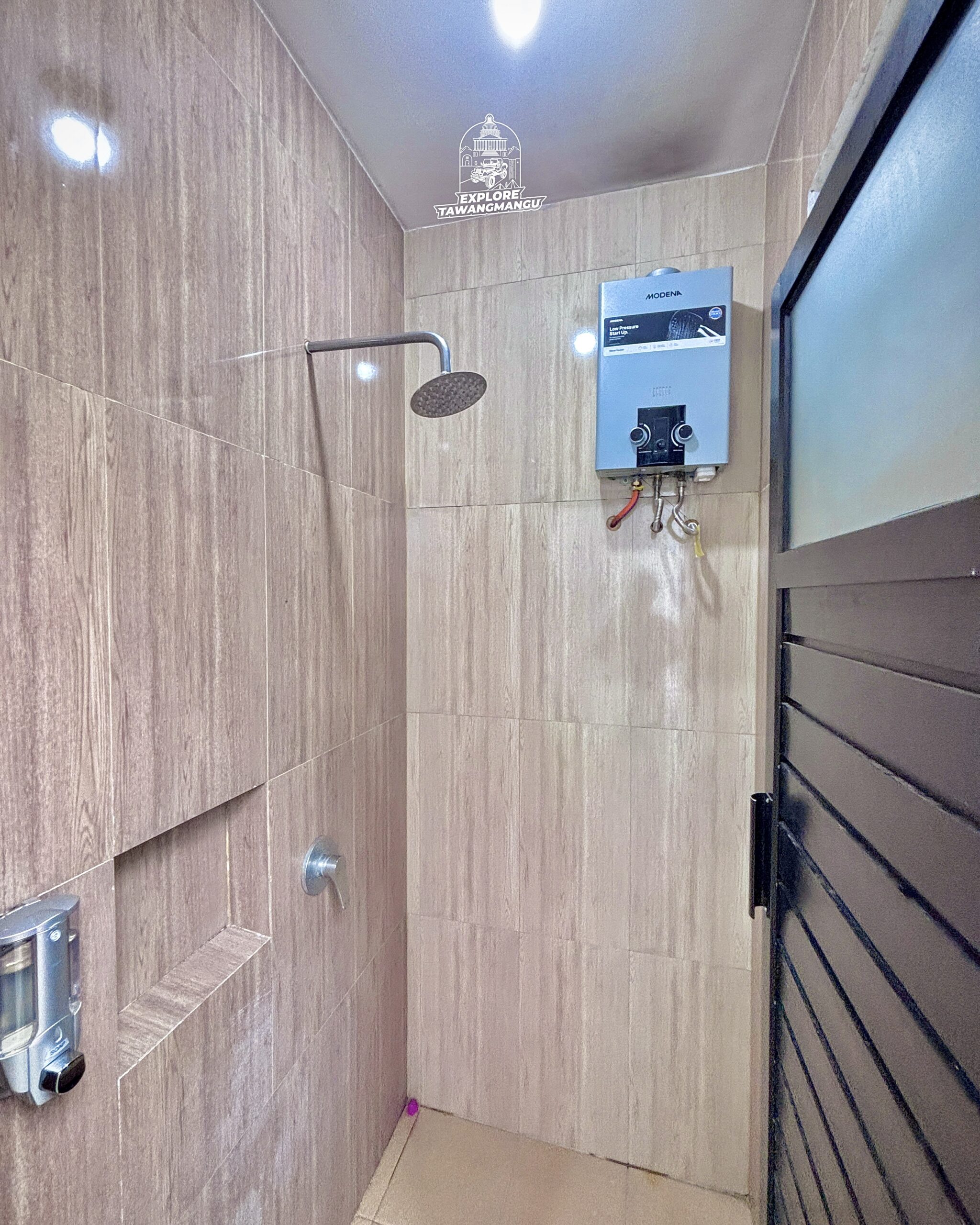 * 3 kamar mandi + 1 ruang bilas dilengkapi dengan water heater